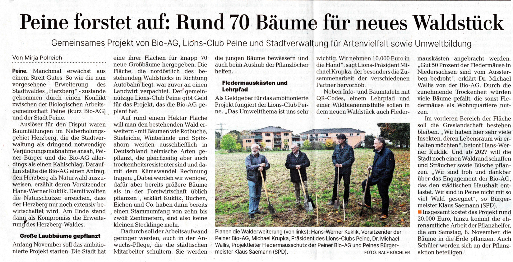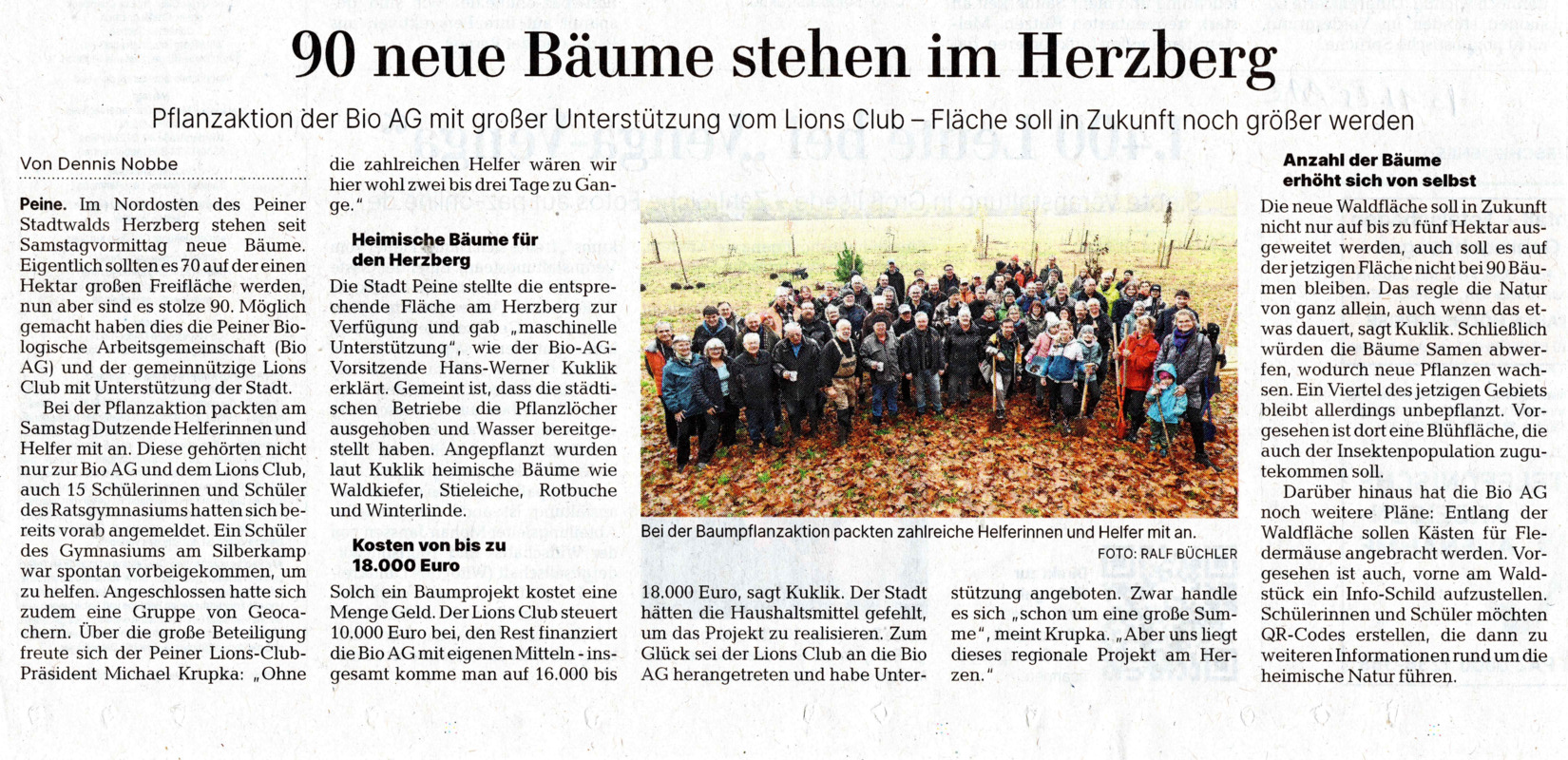 Pflanzaktion im Herzberg mit Unterstützung vom Lions-Club: Pressebericht der PAZ vom 10.11.2025