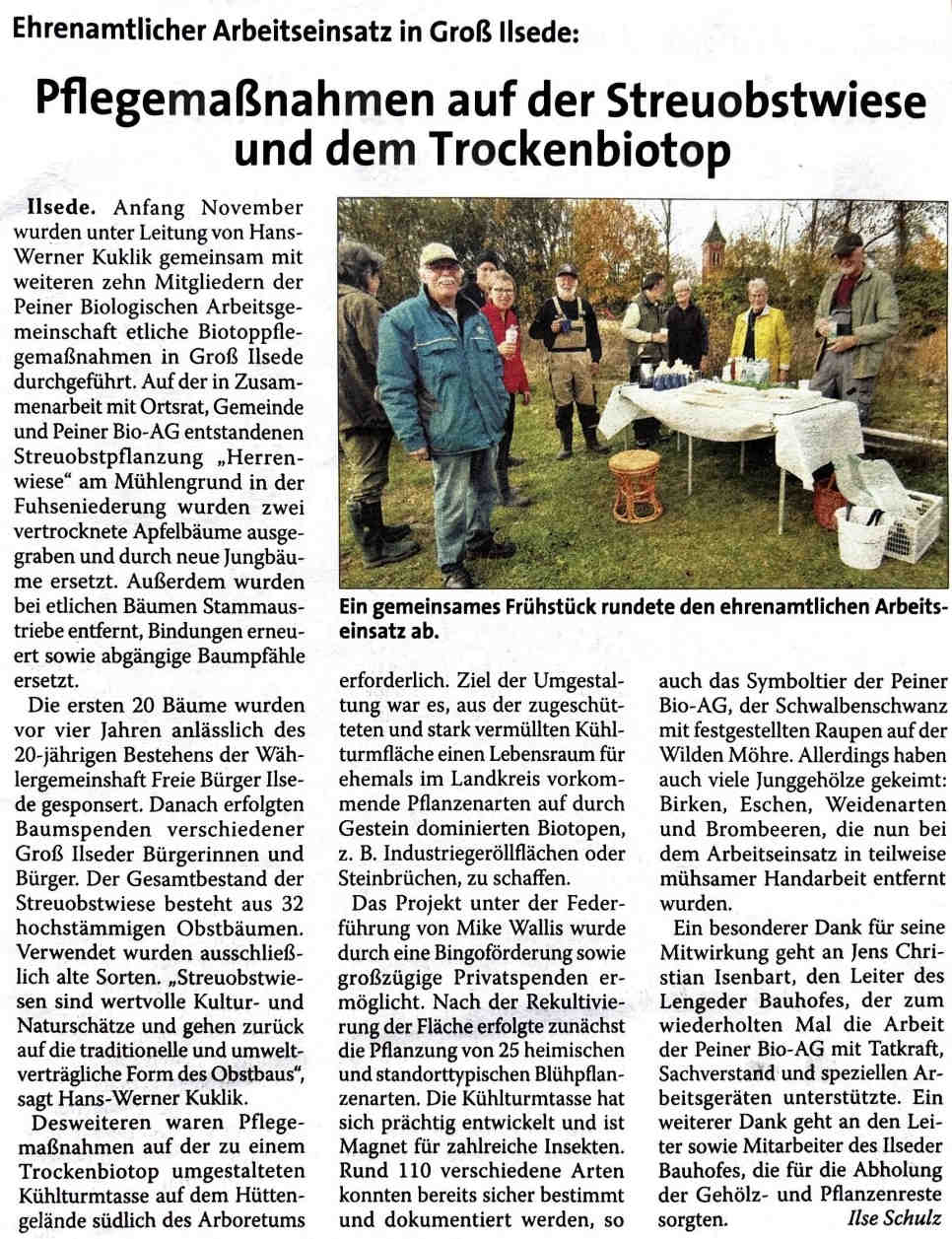Pflegemaßnahmen in Groß Ilsede – Pressemeldung: Ilseder Nachrichten (29.11.2024)