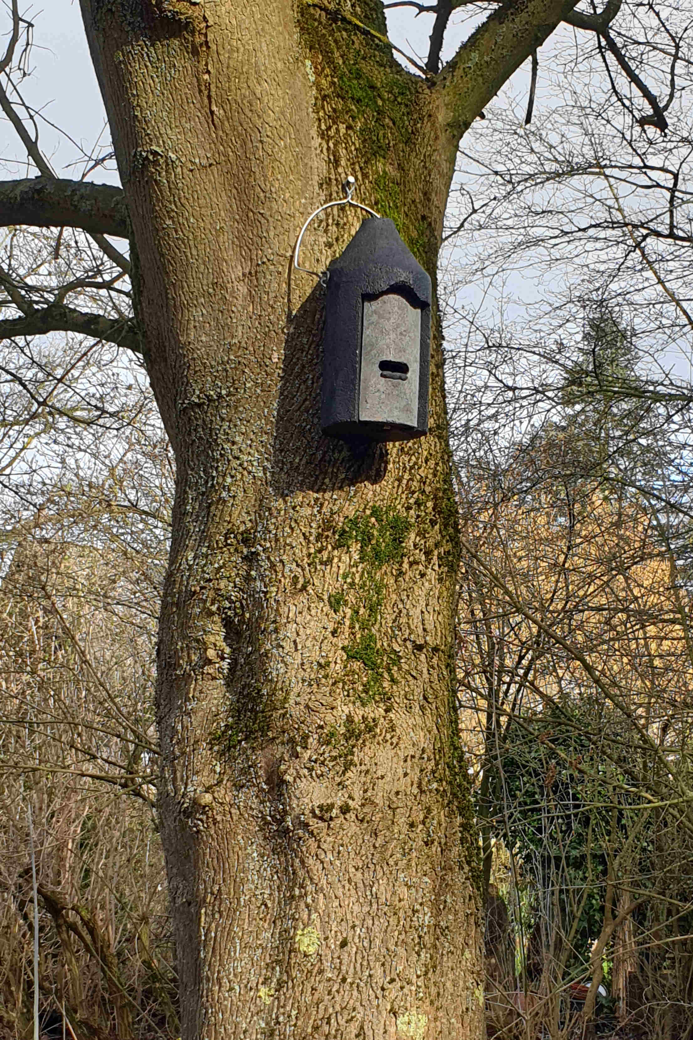 Auf beiden Streuobstwiesen „Am Dill“ und „Altes Land“ konnten wir somit jeweils ein Ganzjahreskasten und drei Sommerkästen an Bäumen am Rande beider Streuobstwiesen anbringen. Somit können Fledermäuse in den beiden Streuobstweisen sichere und ganzjährige Unterkünfte finden.